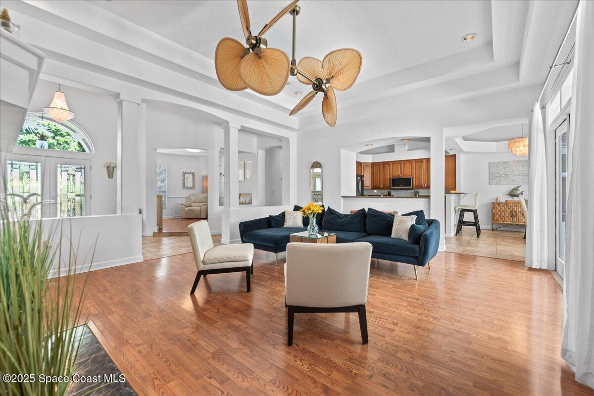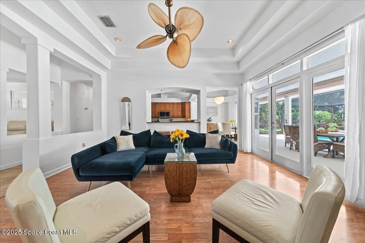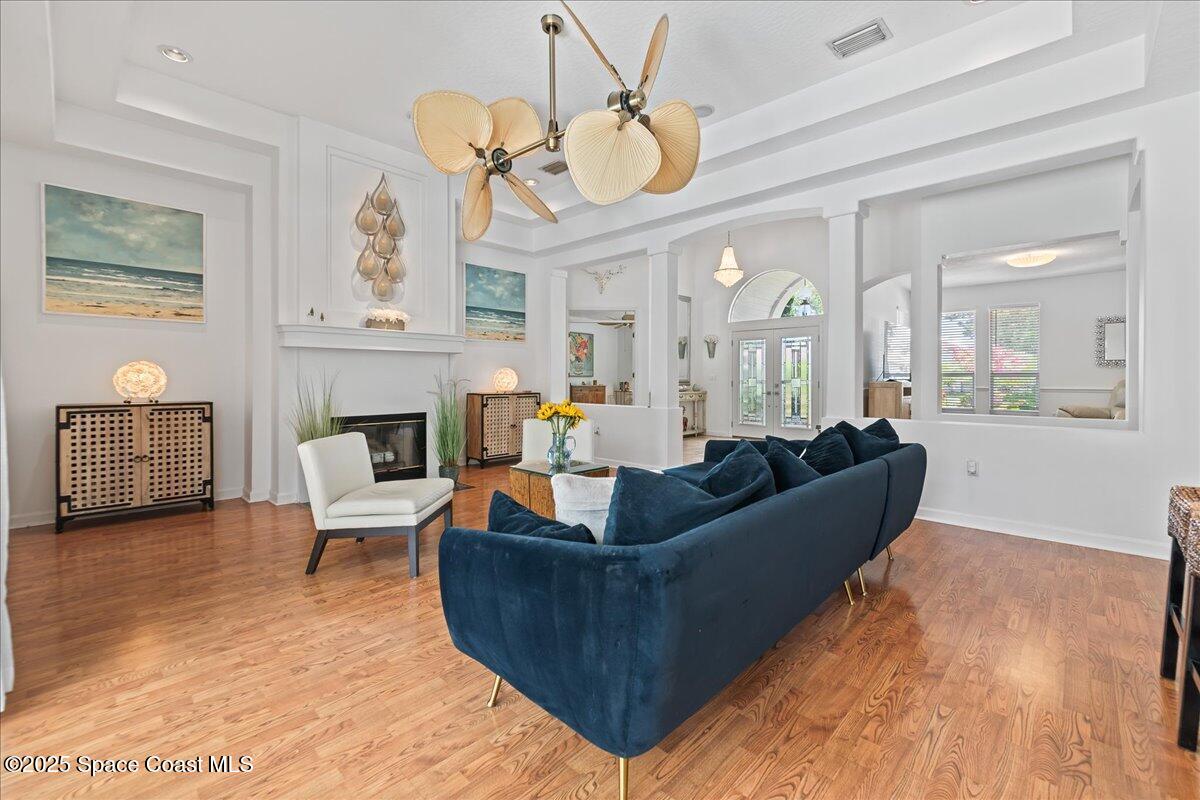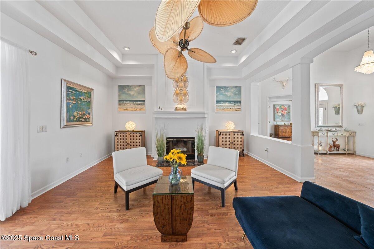 From the moment you arrive, lush landscaping and mature palms create a sense of privacy and seclusion. Step inside to a bright, open floor plan filled with natural light. The formal living room features a charming fireplace—ideal for cozy mornings with coffee or relaxing evenings with a glass of wine and a good book. A separate family room provides space to gather for movie nights or could easily convert into a formal dining area.