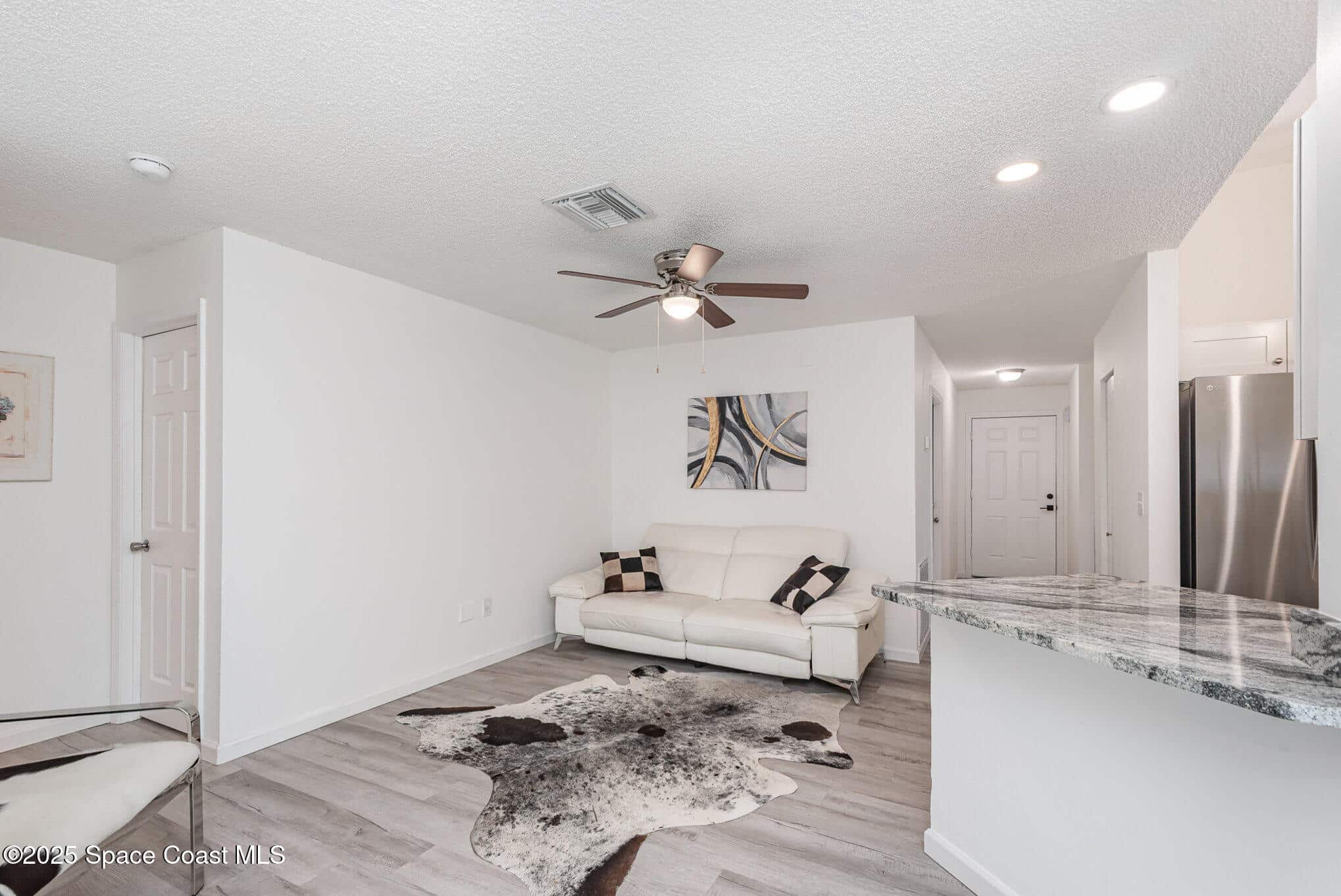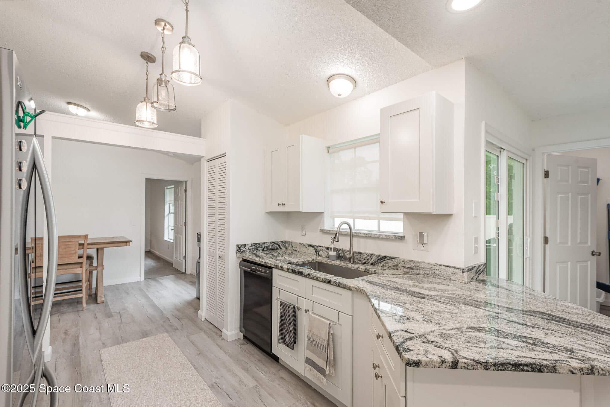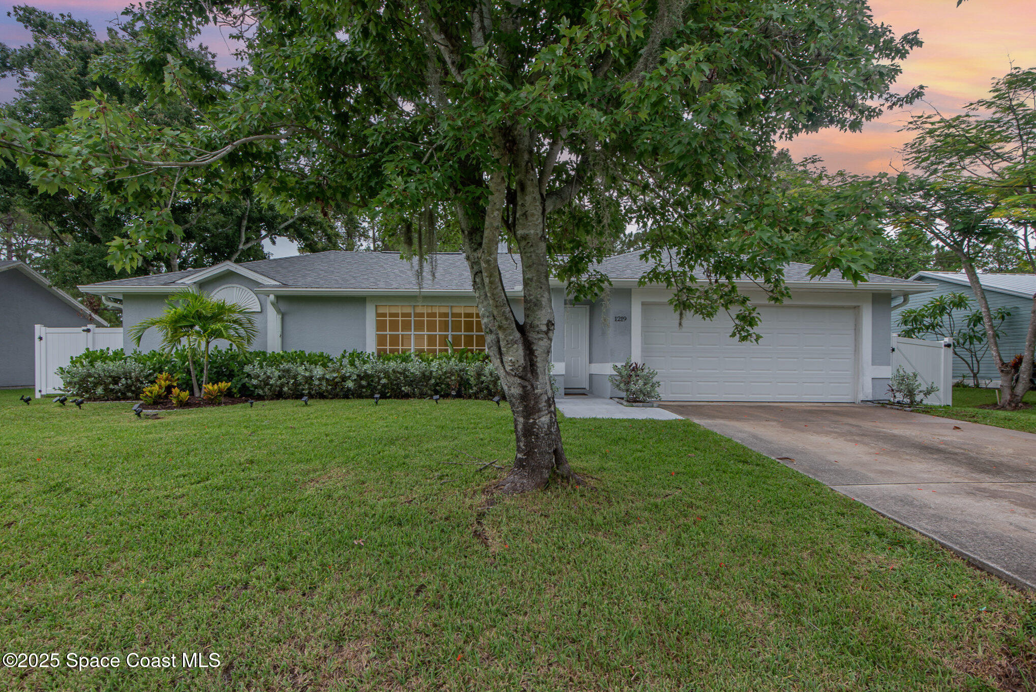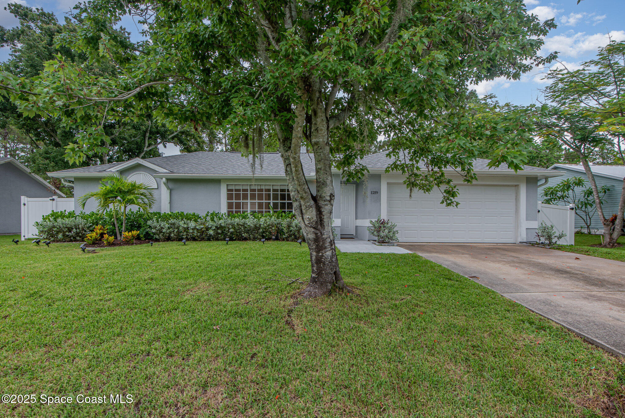 Beautifully updated 3 Bedroom 2 bath 2 car garage residence in desirable and convenient SW Palm Bay under $300k! Nestled in an area where pride in homeownership is evident, without the extra expense of an HOA community or CDD. Updates include 2019 ROOF, 2023 HVAC with UV light, Water Heater and luxury vinyl plank flooring. Kitchen showcases stainless steel appliances and granite countertops. Bathrooms are tastefully updated with granite countertops and neutral wall tile. Large fully Vinyl-fenced 1/4 acre yard with plenty of room for a pool, playset and pets to safely roam! Mature, lighted landscaping on your high and dry lot. The lot across the street has a serene and park-like feel and the neighborhood is convenient to shopping, dining, recreational parks, sports complexes, interstate, excellent schools and major employers. Schedule your private showing today!
