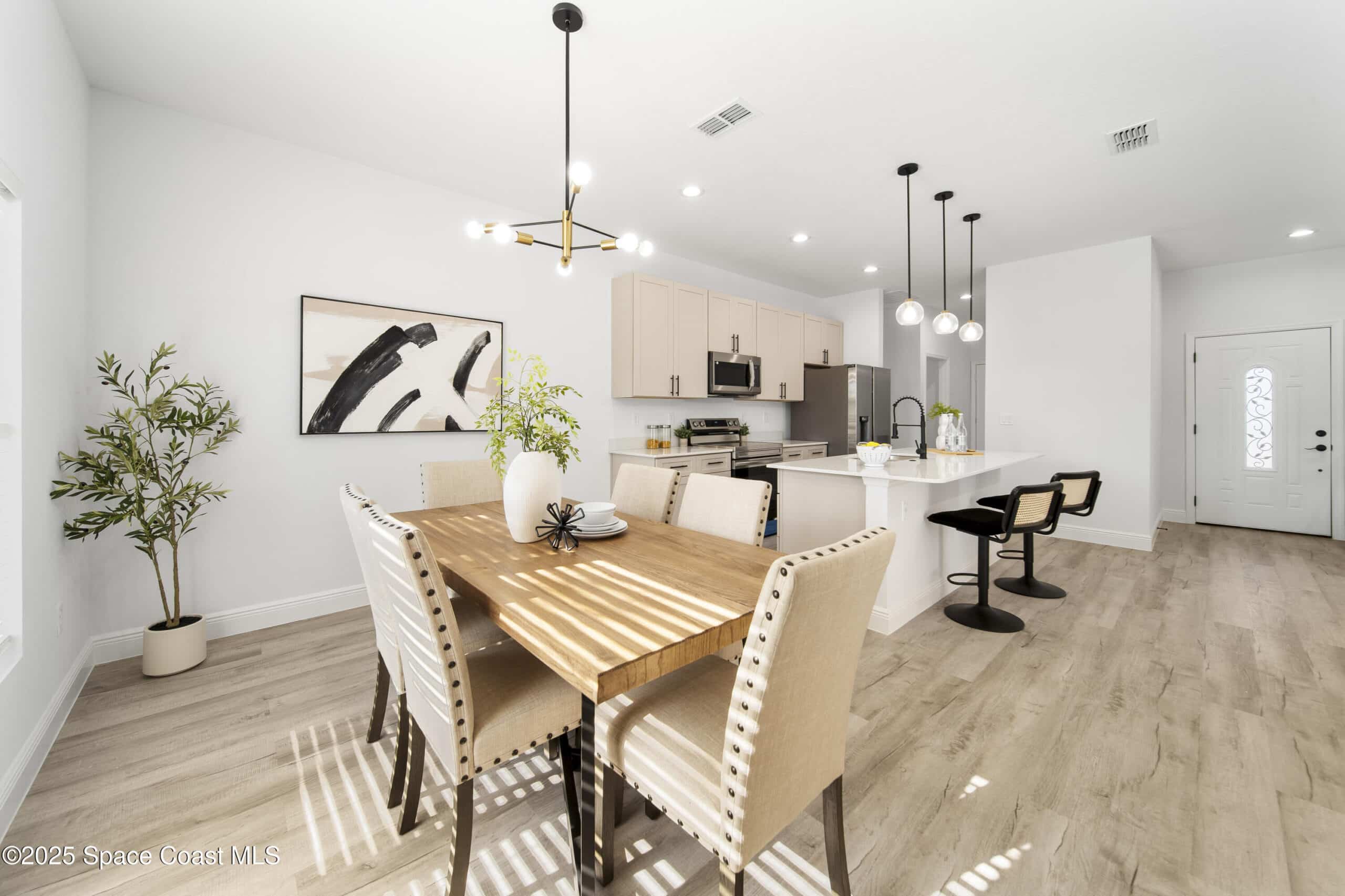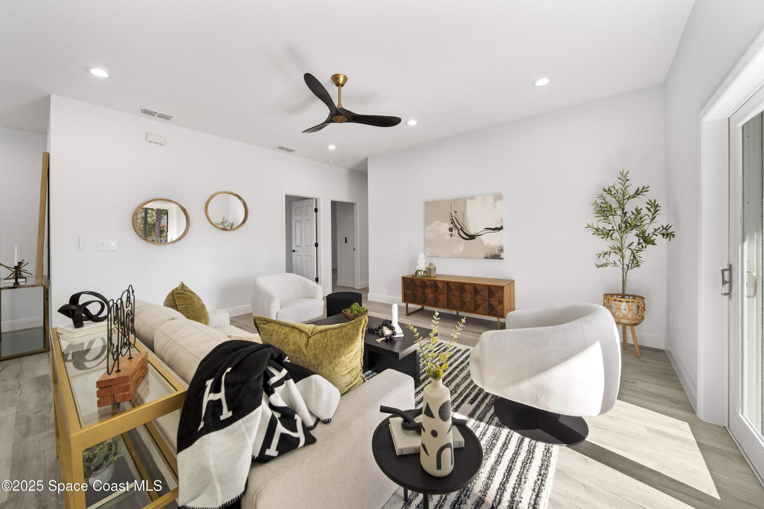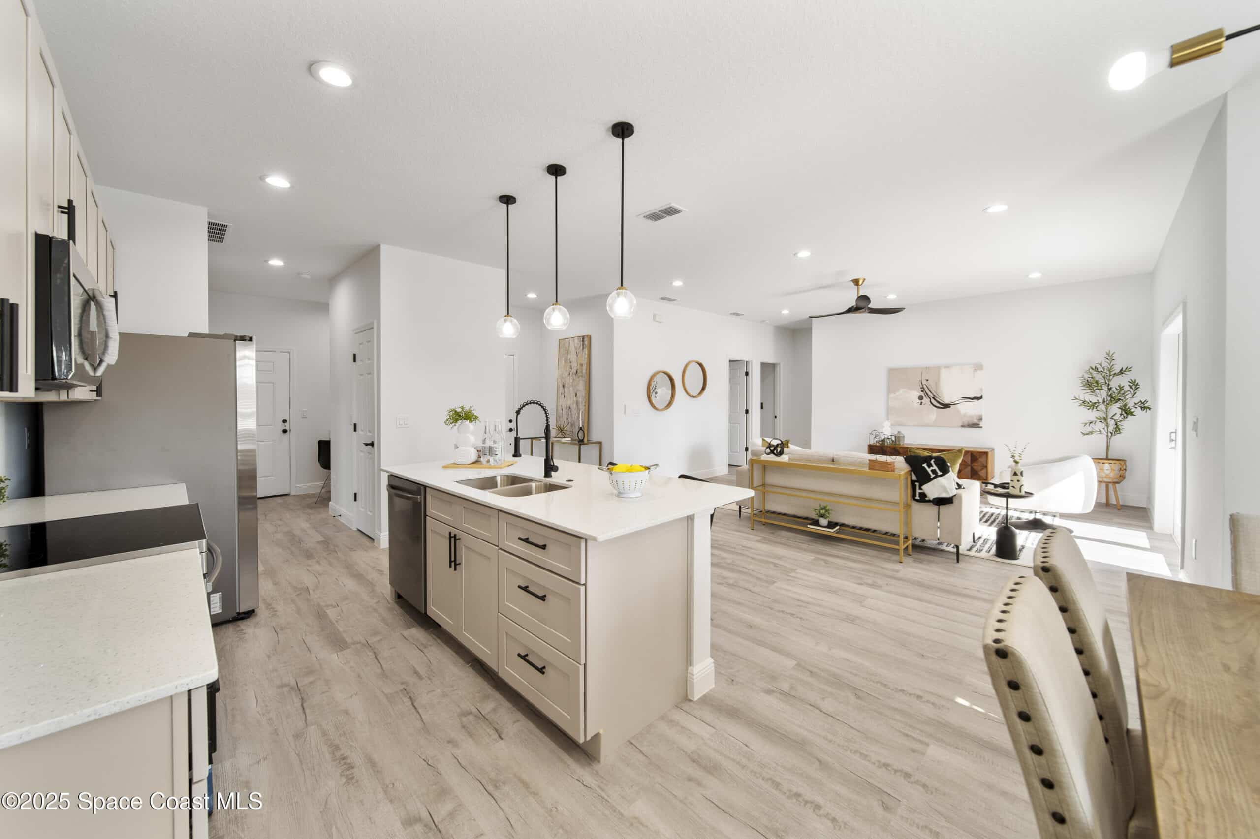 $15,000 Buyer's Incentives OR This house comes with a locked in REDUCED RATE as low as 5.25% (APR 5.751%) as of 08/07/2025 through List & Lock™. This is a seller paid rate-buydown that reduces the buyer's interest rate and monthly payment. Terms apply, see disclosures for more information. Modern Living in Palm Bay - Your Dream Home Awaits! Welcome to this beautifully designed brand-new home in the heart of Palm Bay, where modern aesthetics meet sturdy craftsmanship. Built with block construction, coated in durable stucco, and supported by a solid slab foundation, this home is built to stand the test of time. Step Inside: As you enter, you're greeted by a sunny and spacious open layout designed for both comfort and style. The home features a dedicated living area, a separate dining space, and a large kitchen - all bathed in natural light. Gourmet Kitchen Features: Elegant light shaker cabinets with soft-close technology, Stunning quartz countertops High-quality stainless steel appliances, a spacious walk-in pantry - perfect for a large family. Work-From-Home Ready: This home includes a versatile flex/office space with a USB outlet, offering the ideal setup for remote work or study. Master Suite Retreat: two large windows for ample natural light Convenient USB outlets, Spacious his-and-hers closets, A luxurious en-suite bathroom with: Double vanities and oversized mirrors A tall, glass-enclosed shower Family-Friendly Layout:On the opposite side of the home, you'll find three large bedrooms, each with ceiling fans, sharing a spacious bathroom designed for comfort and convenience. Outdoor Oasis: From the living area, step out to the large lanai, where you can relax and take in the peaceful backyard, making it the perfect space for unwinding or entertaining. No HOA or CDD Fees! This home is not in a community, so you'll enjoy the freedom of no HOA or CDD fees. Located in a prime area of Palm Bay this home offers the perfect combination of tranquility and accessibility. Don't Wait - Schedule Your Tour Today!Experience the charm, quality, and modern living of this exceptional home. Pictures from different houses- same floor plan, pics are staged. Ask for a complete list of homes available now.
