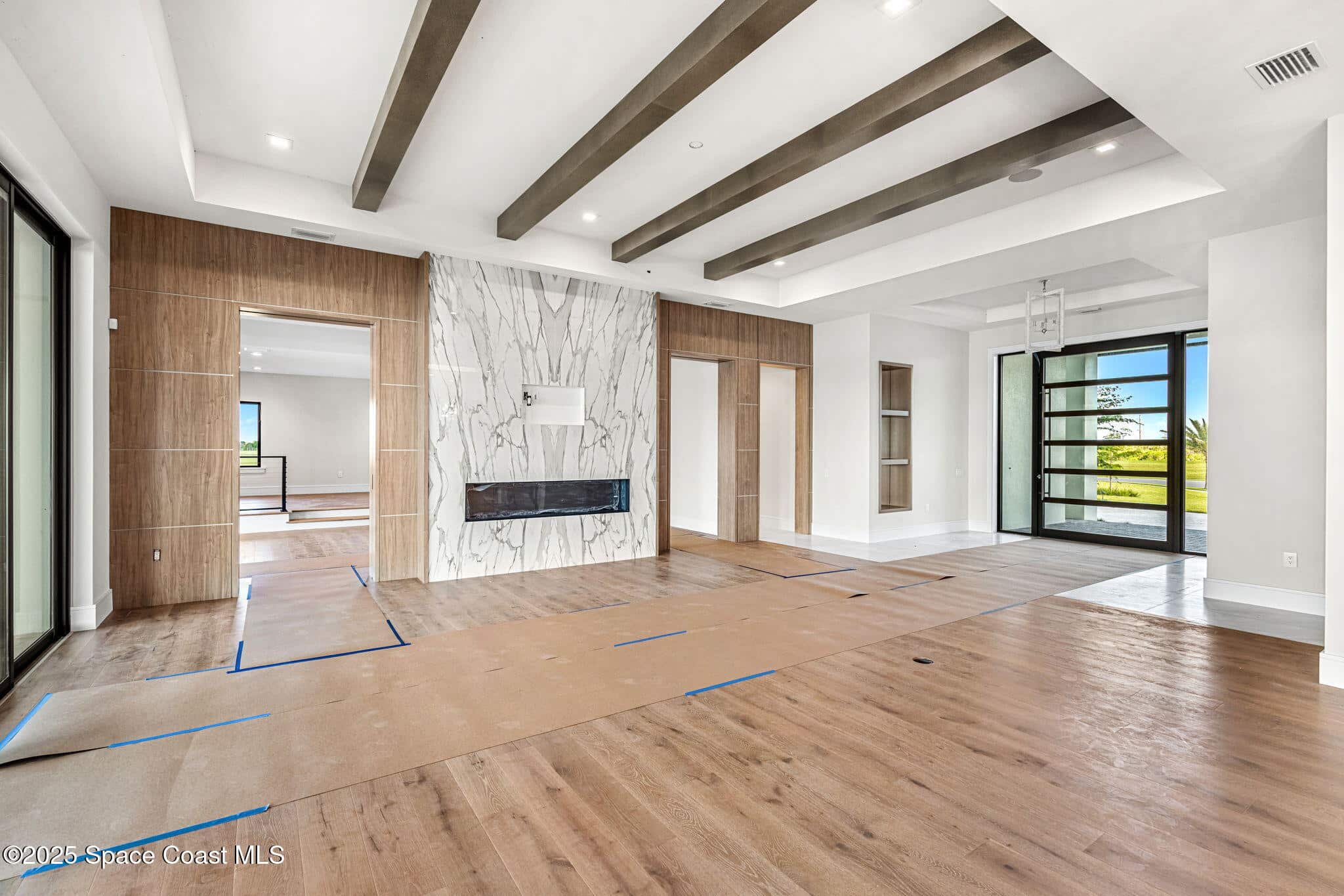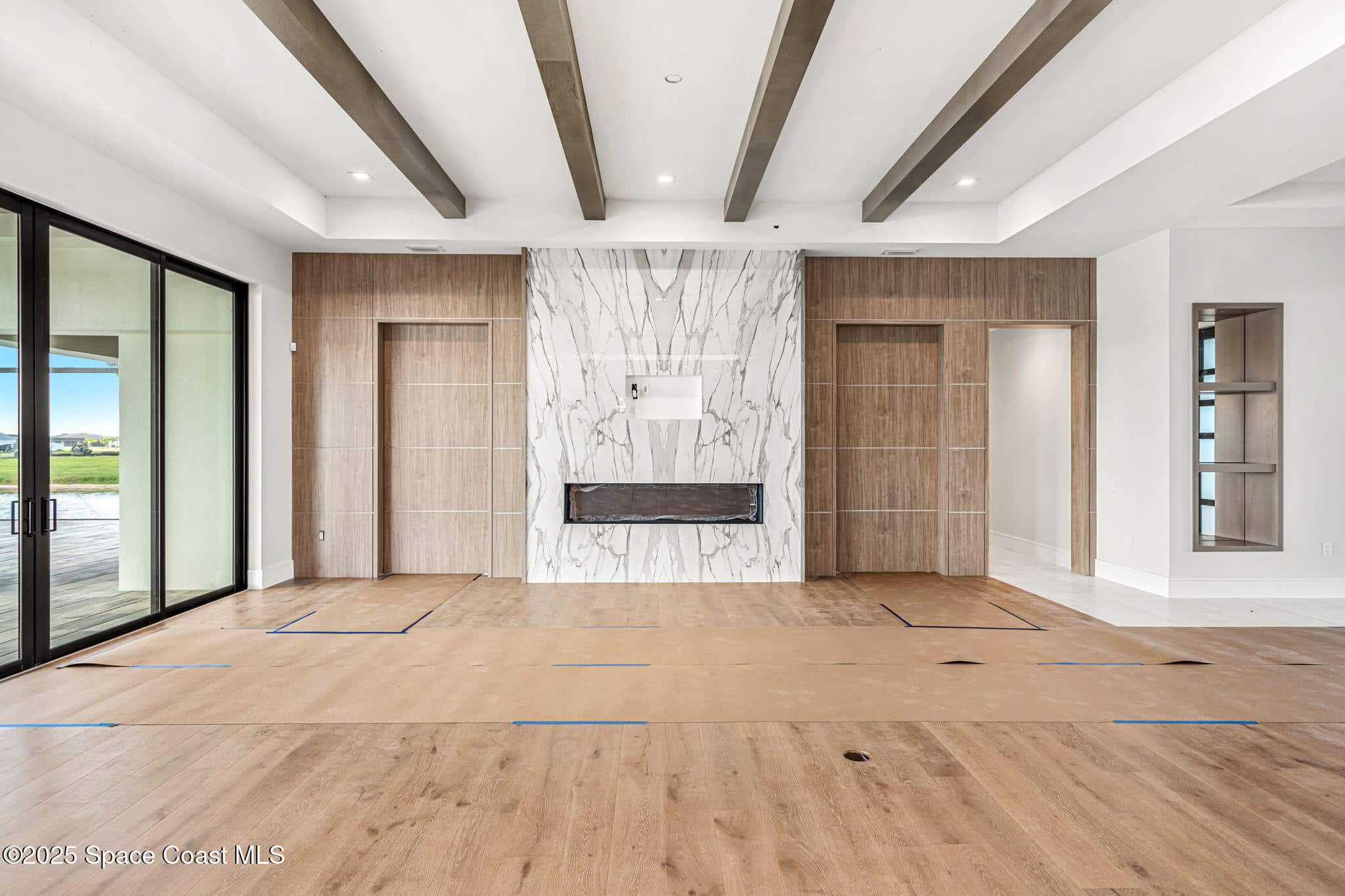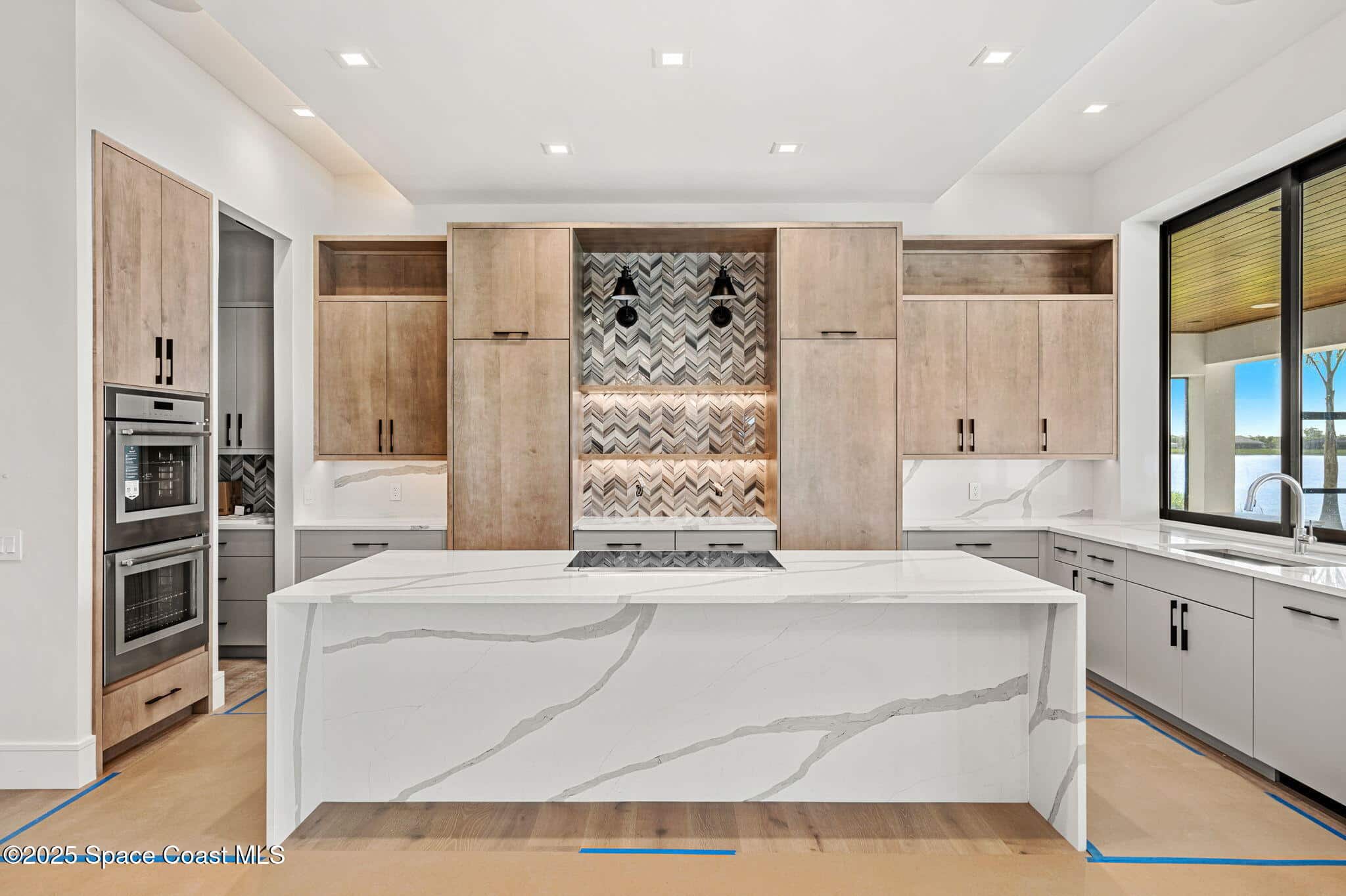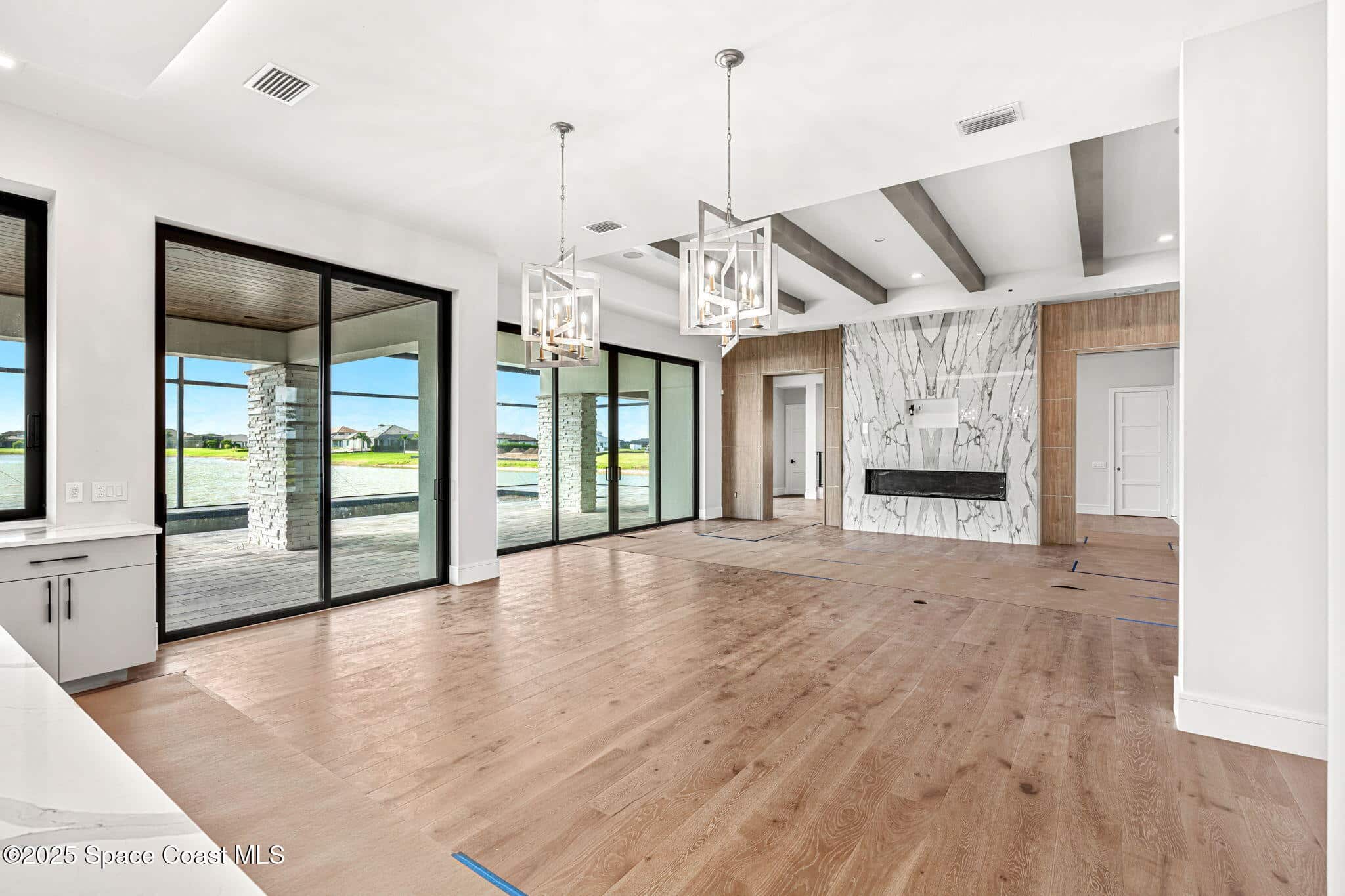 A masterpiece forged over two years of visionary artistry nears completion on Adelaide's most coveted lot, with sweeping views down Viera's grandest lake. Hardwood & rich tile floors lead to a magnificent great room, where a sleek electric fireplace anchors soaring ceilings. Disappearing sliders reveal a resort-worthy backyard oasis. The gourmet kitchen, a study in elegance, boasts marbled quartz, Thermador appliances, a butler's pantry, and an expansive island for lavish gatherings. A versatile flex room dazzles with dual pocket doors and a pool bath. The owner's suite, a serene escape, offers lanai access, a spa-inspired bath, and a celebrity-caliber closet with a hidden laundry passage. Outdoors, a vast saltwater pool, summer kitchen, and fireplace craft a timeless sanctuary. An air-conditioned Amazon delivery room and four-car garage elevate this estate to unrivaled perfection, leaving no desire unfulfilled.