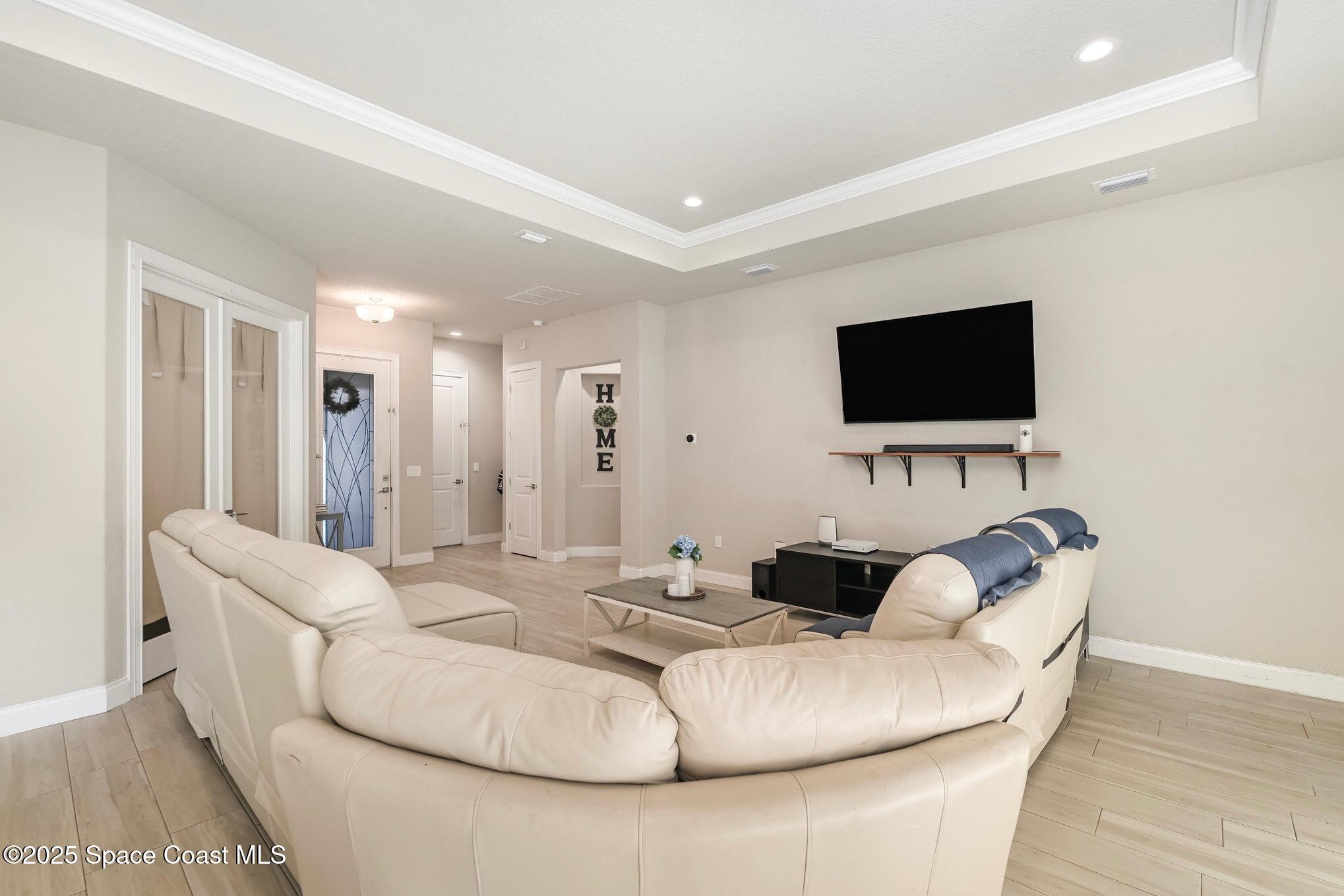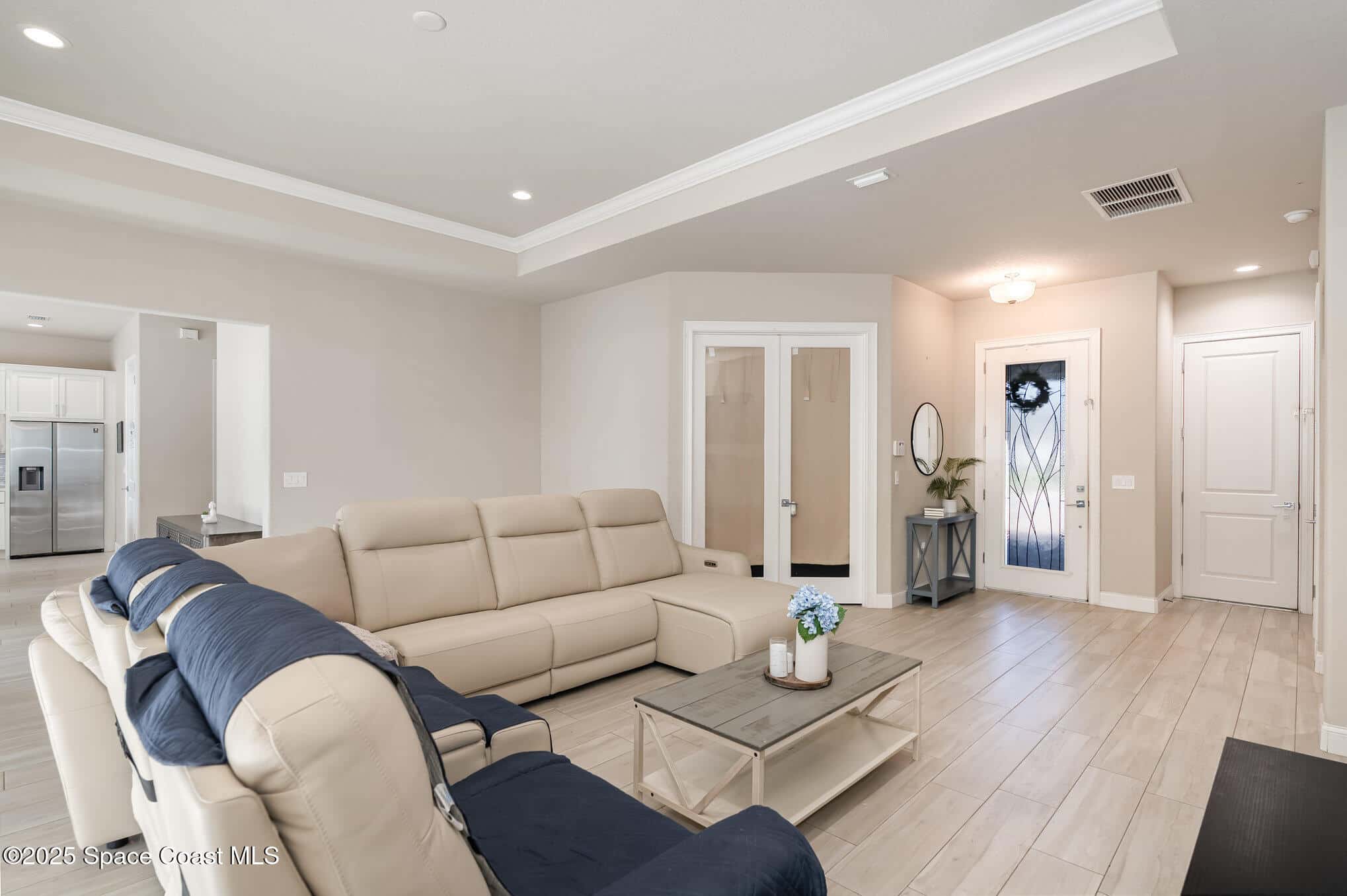 Welcome to the epitome of elegance and modern comfort. Nestled in a sought-after, builder-exclusive community, this meticulously crafted custom Ventura model home is designed to impress from the moment you step inside. The home radiates sophistication with its bright and open layout, offering both style and functionality for discerning homeowners. ✨ Interior Highlights • 5¼'' baseboards bring a subtle touch of craftsmanship that frames every room beautifully. Architectural Excellence • Soaring 10-foot ceilings throughout the home enhance the sense of spaciousness. • Trey ceilings in both the Master Suite and Grand Room add a layer of architectural charm and depth. This home doesn't just meet expectations—it exceeds them. From its refined finishes to its thoughtful layout, every detail has been carefully curated to deliver comfort, beauty, and enduring value.