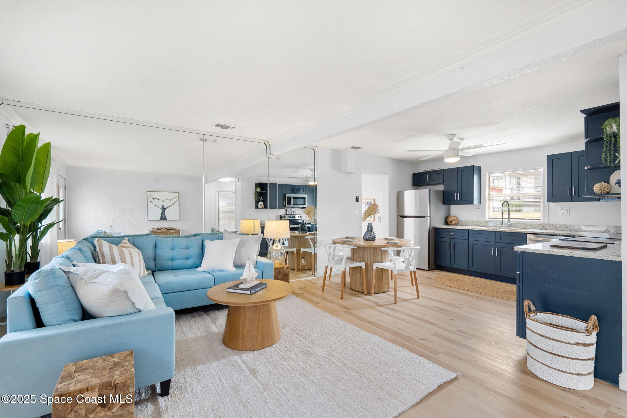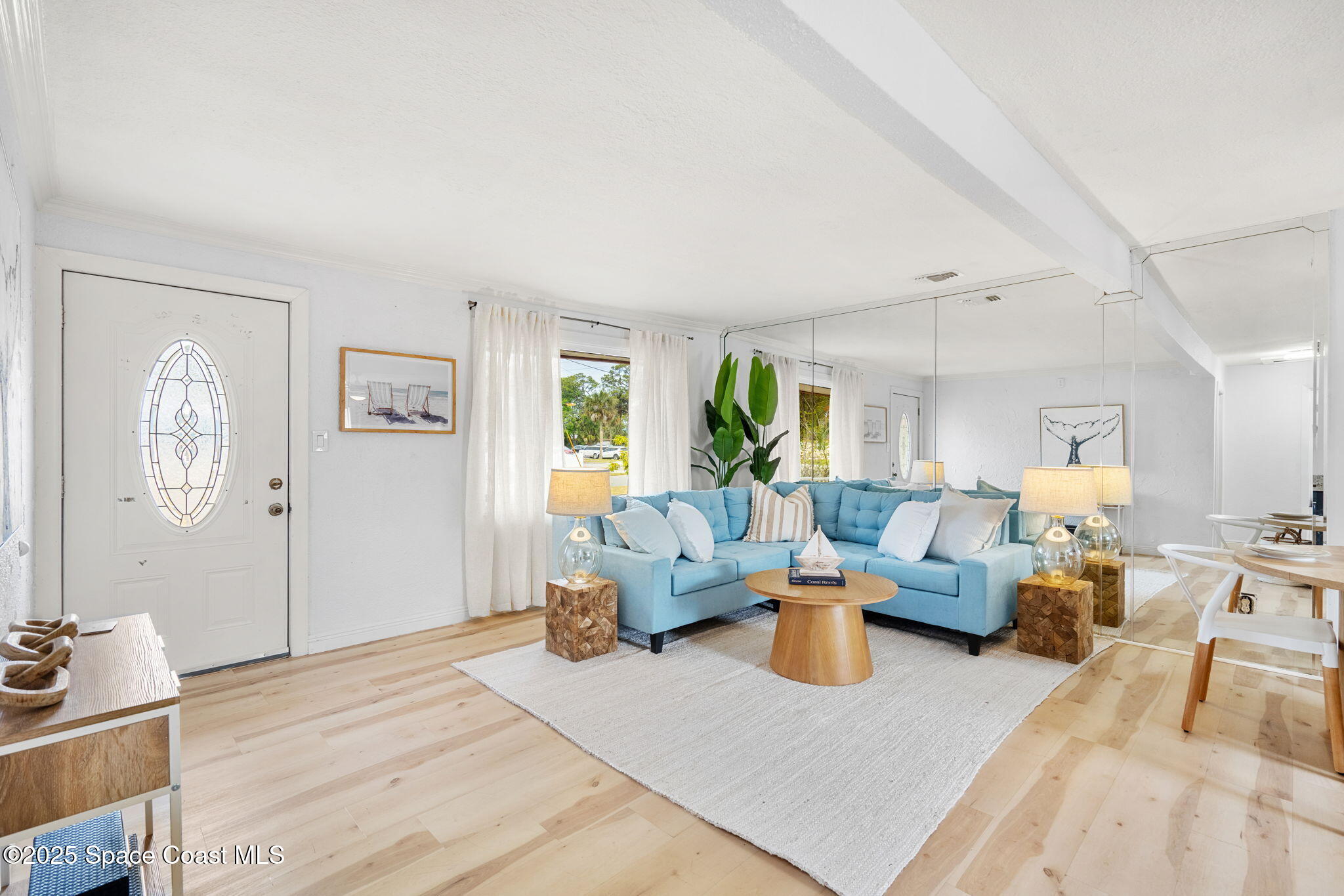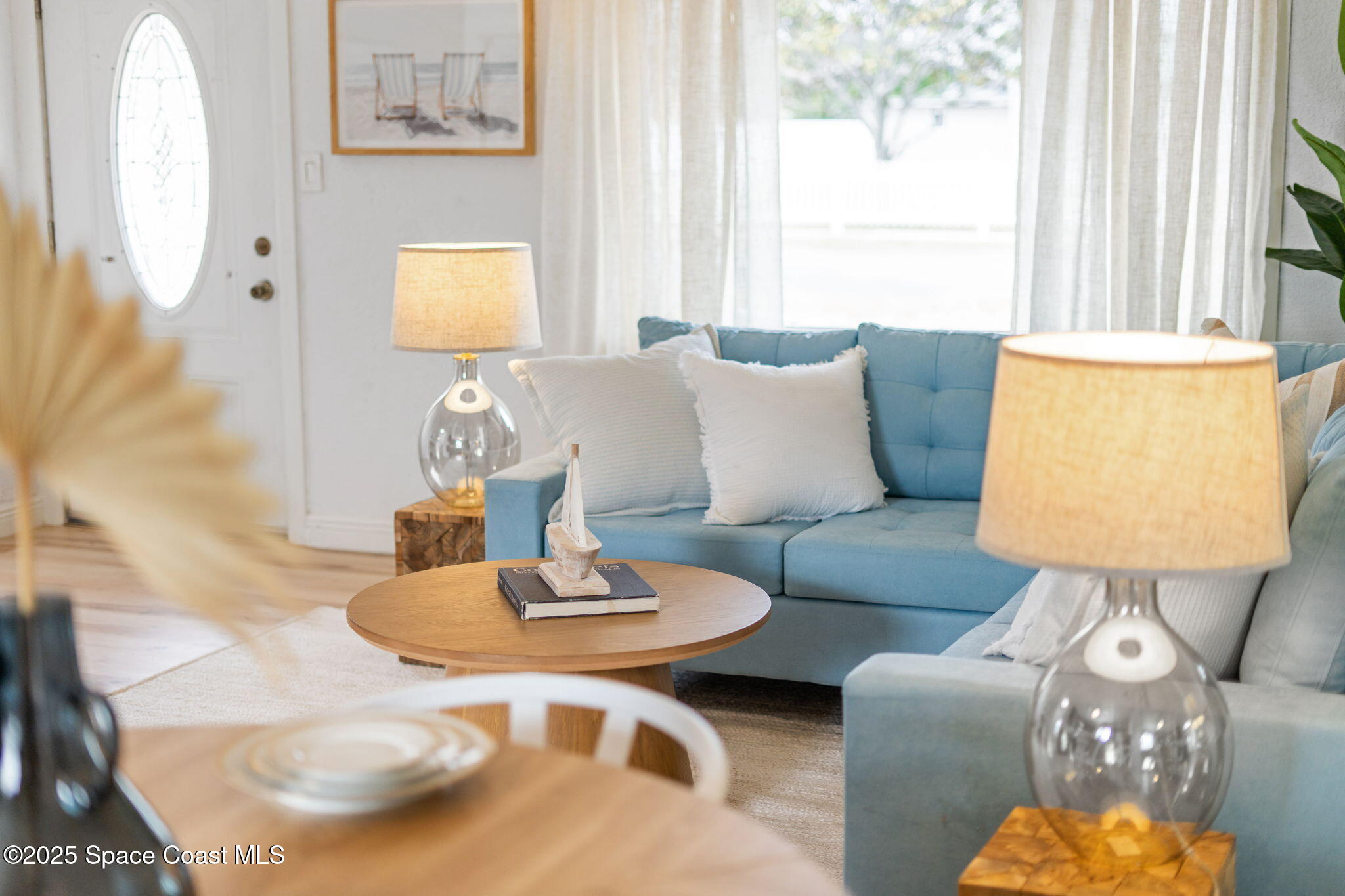 Investor Alert **Tenant in place at $1850 per month** This beautifully renovated home is a true standout, featuring new wood plank flooring throughout and a stylish, modern design. The kitchen boasts gorgeous blue cabinetry, granite countertops, top-of-the-line stainless steel appliances, and ample counter space, all illuminated by two large windows that flood the space with natural light. Recent upgrades include a brand-new central AC system, fresh interior and exterior paint, new bathrooms, new fans, new PVC plumbing, and a tankless water heater. Step outside to find a detached shed for extra storage and a spacious yard perfect for relaxing or entertaining. Located just one block from Kirk Point Park and the Indian River, this home offers an unbeatable lifestyle. Enjoy peaceful walks to the water or watch rocket launches right from your front or backyard! Plus, with restaurants and amenities just minutes away, convenience meets coastal charm in this must-see property.