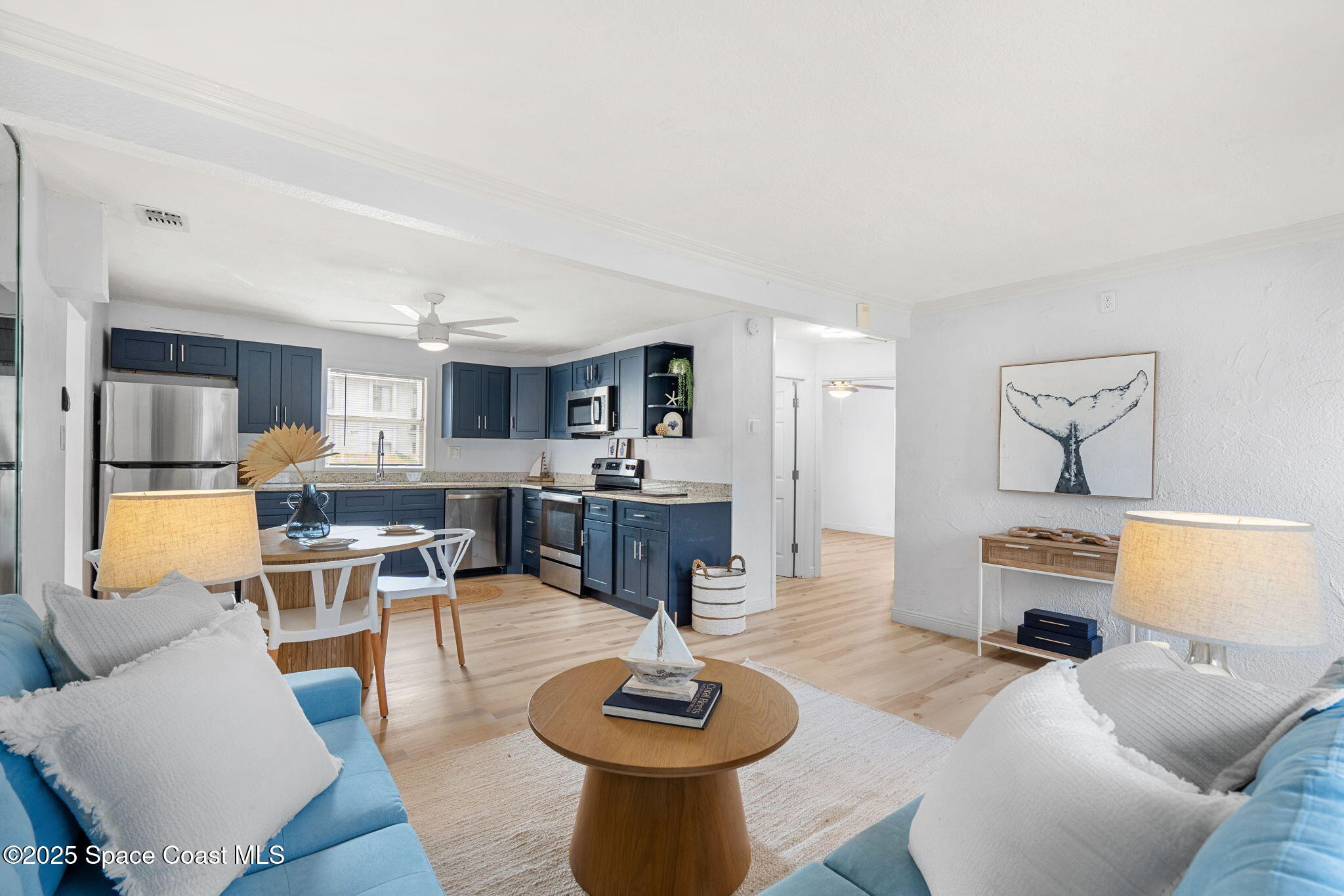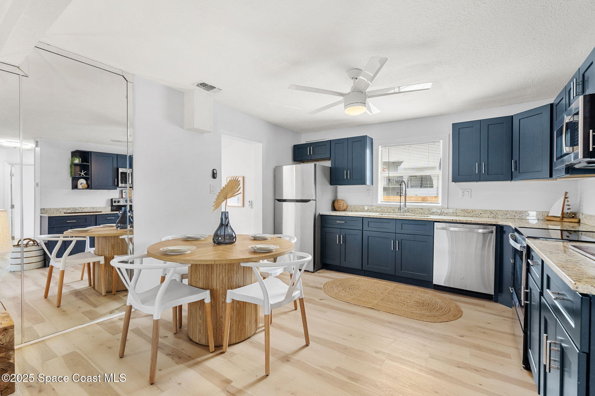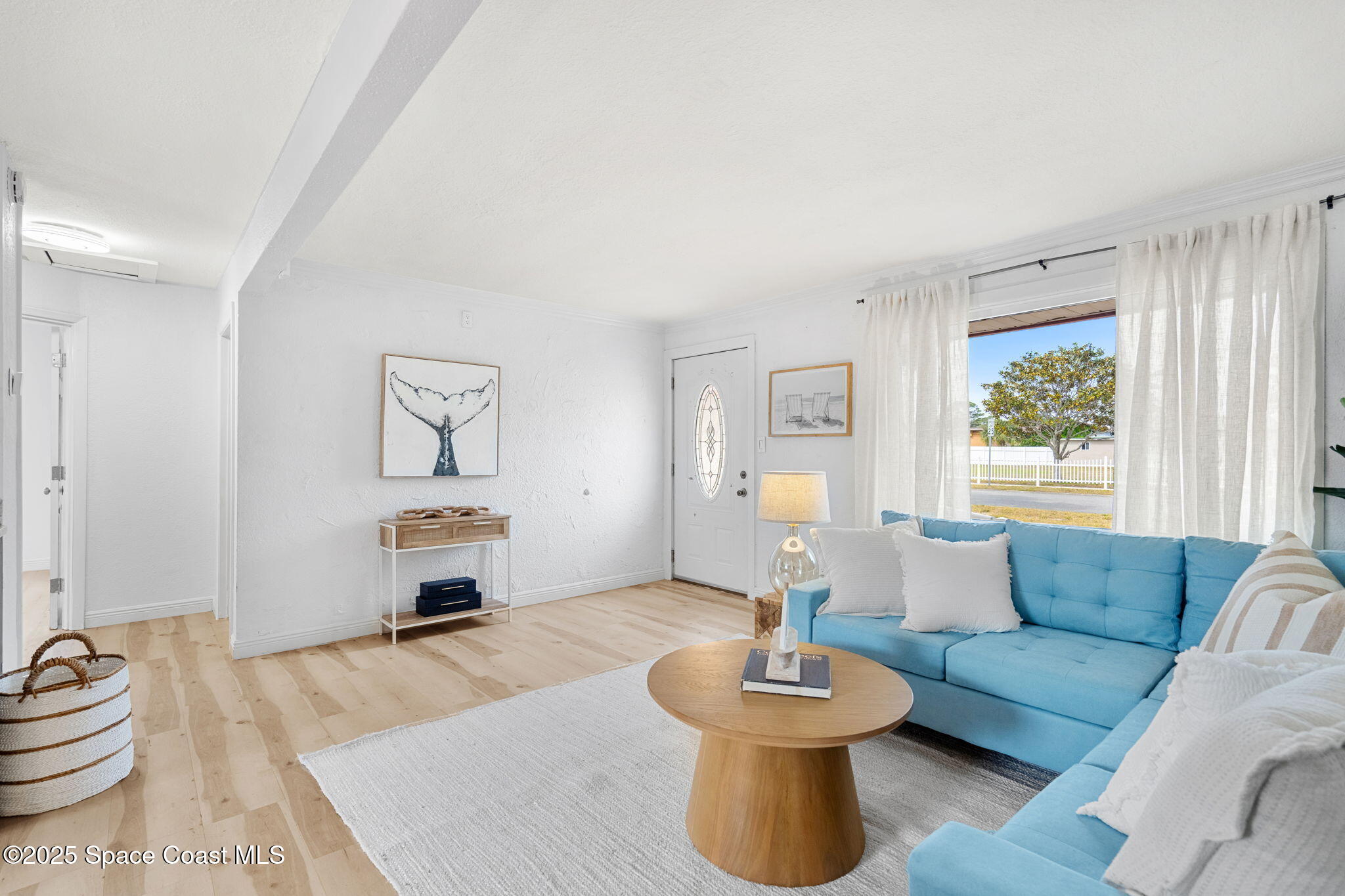 Investor Alert **Tenant in place at $1850 per month** This beautifully renovated home is a true standout, featuring new wood plank flooring throughout and a stylish, modern design. The kitchen boasts gorgeous blue cabinetry, granite countertops, top-of-the-line stainless steel appliances, and ample counter space, all illuminated by two large windows that flood the space with natural light. Recent upgrades include a brand-new central AC system, fresh interior and exterior paint, new bathrooms, new fans, new PVC plumbing, and a tankless water heater. Step outside to find a detached shed for extra storage and a spacious yard perfect for relaxing or entertaining. Located just one block from Kirk Point Park and the Indian River, this home offers an unbeatable lifestyle. Enjoy peaceful walks to the water or watch rocket launches right from your front or backyard! Plus, with restaurants and amenities just minutes away, convenience meets coastal charm in this must-see property.