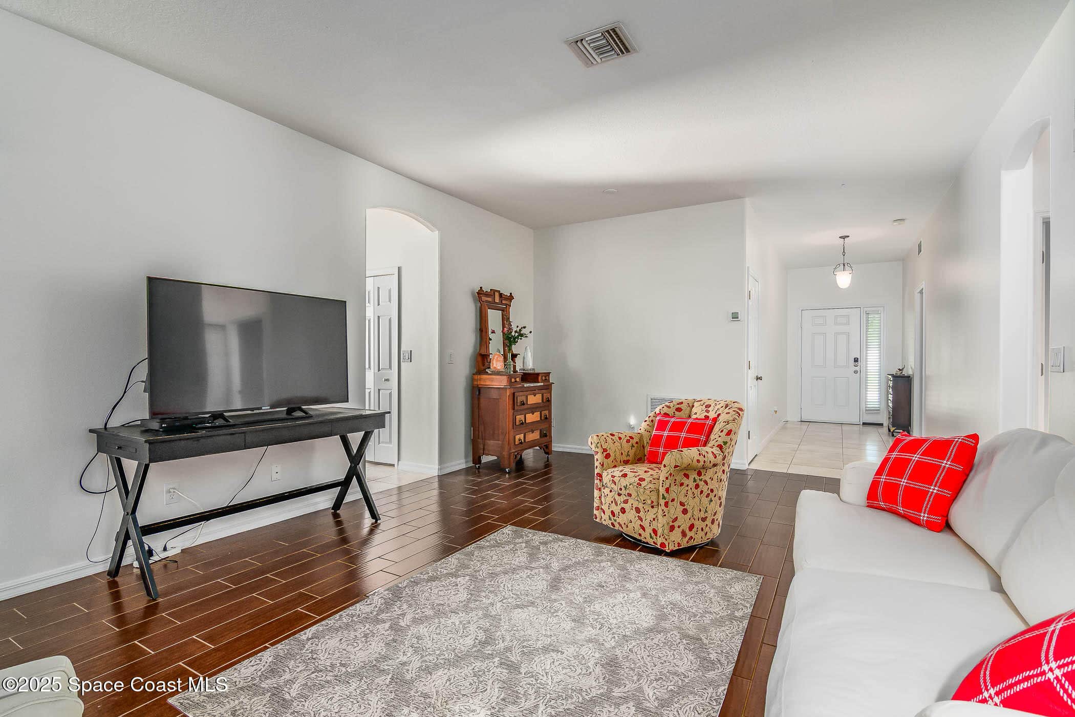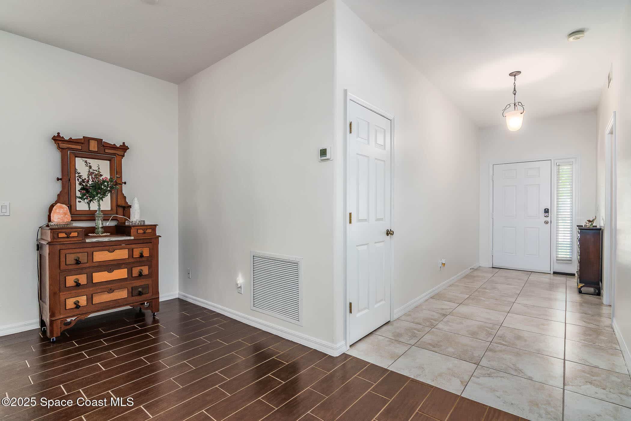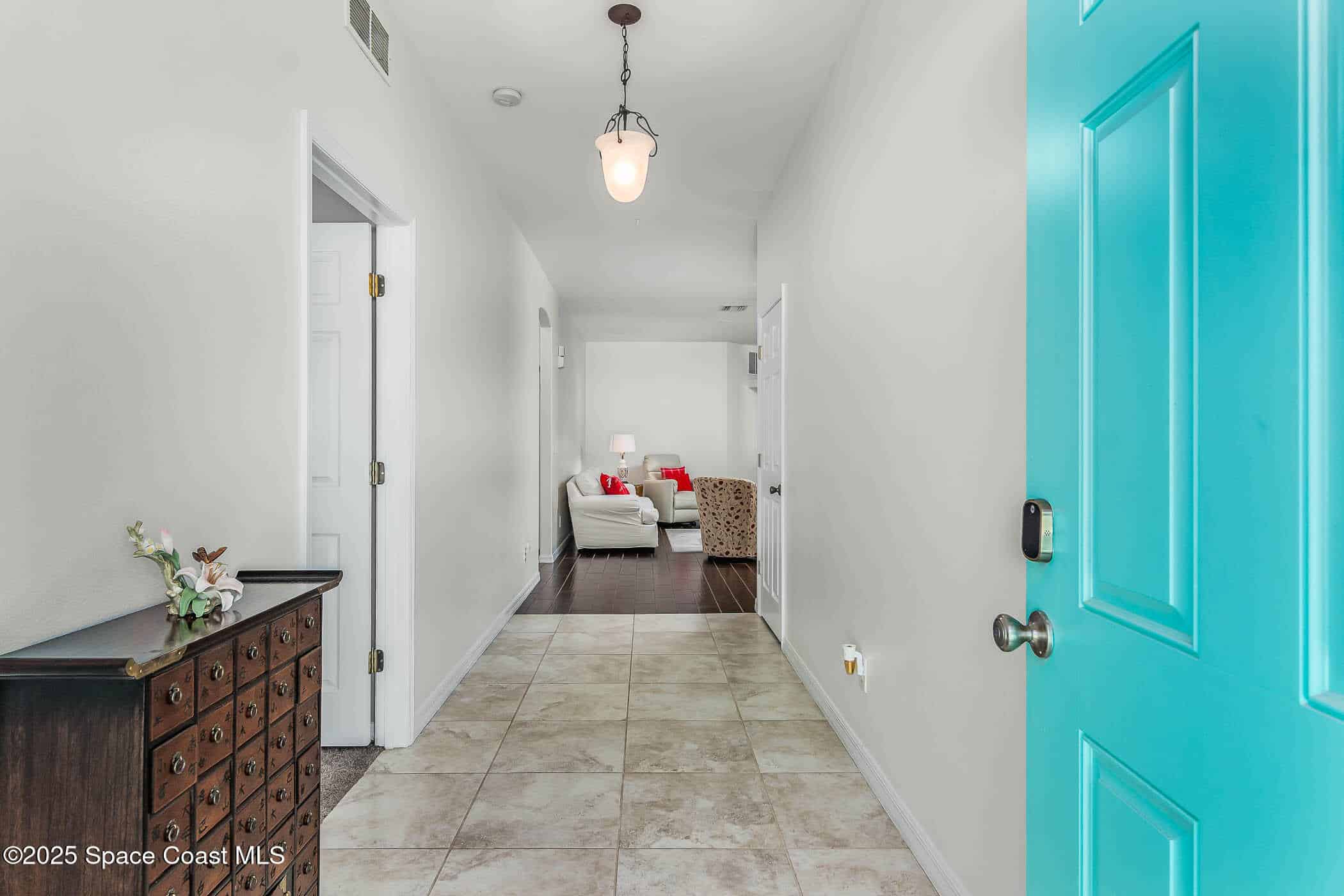 Welcome to this immaculate waterfront home in the heart of West Viera, offering modern updates and effortless living! Enjoy the benefits of a brand-new roof (2023), water heater (2025), interior/exterior painted (2025) & AC (2015). Step inside to an open layout w/ vaulted ceilings, wood-look tile floors, a spacious great room, and a large casual dining area. The kitchen features tall cabinets, matching stainless steel appliances, generous counter space with a breakfast bar, and a huge walk-in pantry. The en-suite offers a tranquil retreat with a walk-in closet, a new vanity with dual sinks, a garden tub, and a separate step-in shower. The guest bathroom also has a new vanity. Sliding doors lead to the screened porch, where you can relax with serene water views and no rear neighbors. A sprinkler system in the front and back keeps the lawn lush year-round. All of this just minutes from top-rated schools, shopping, dining, golf, and parks—in one of Brevard's most desirable neighborhoods.