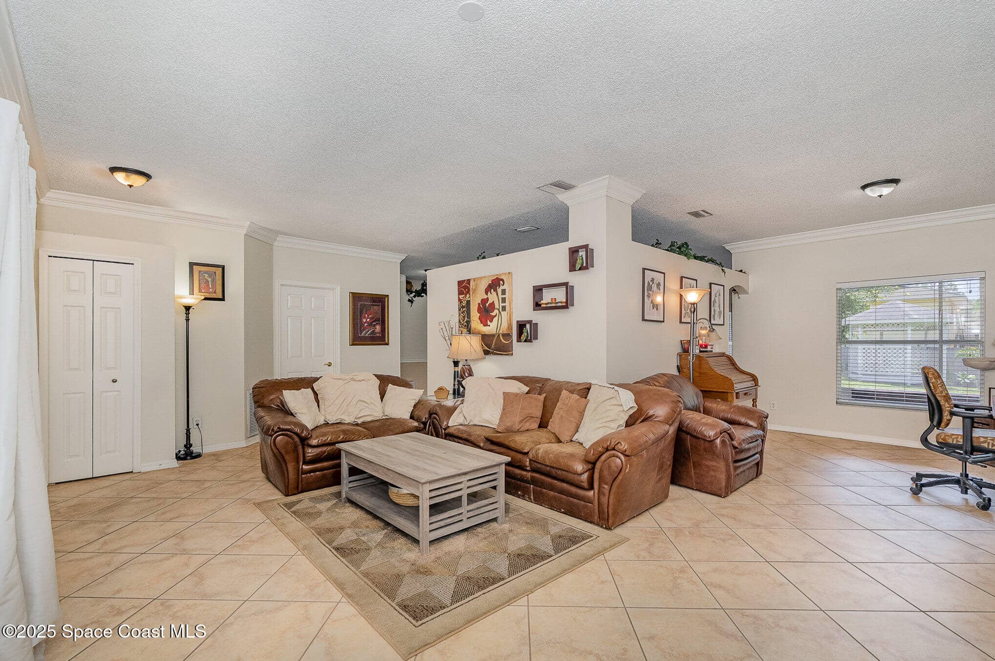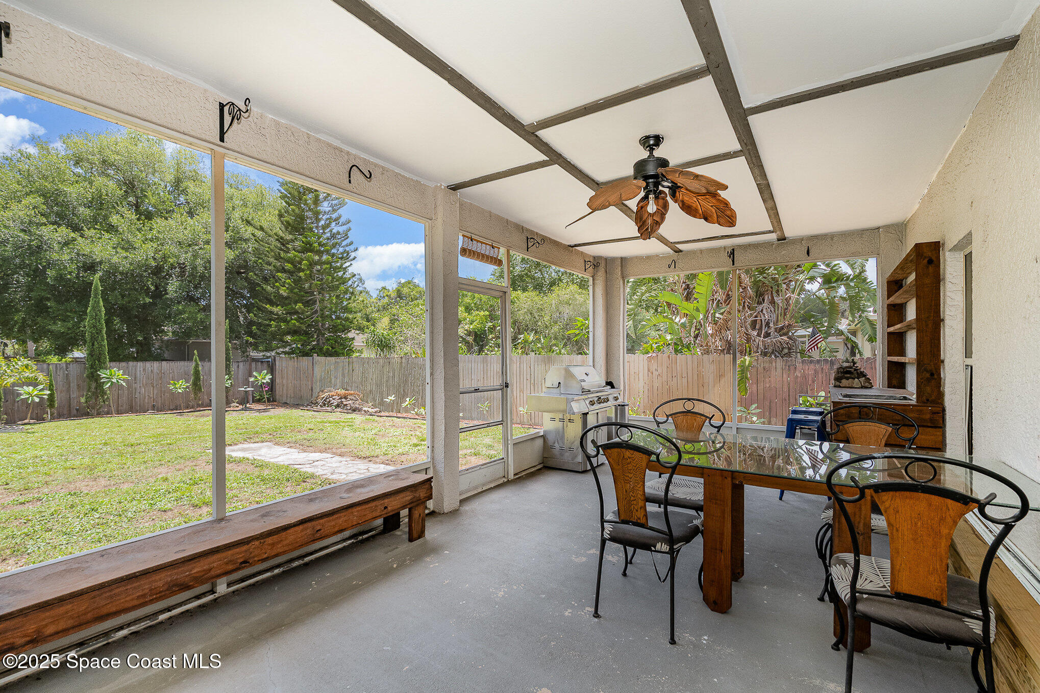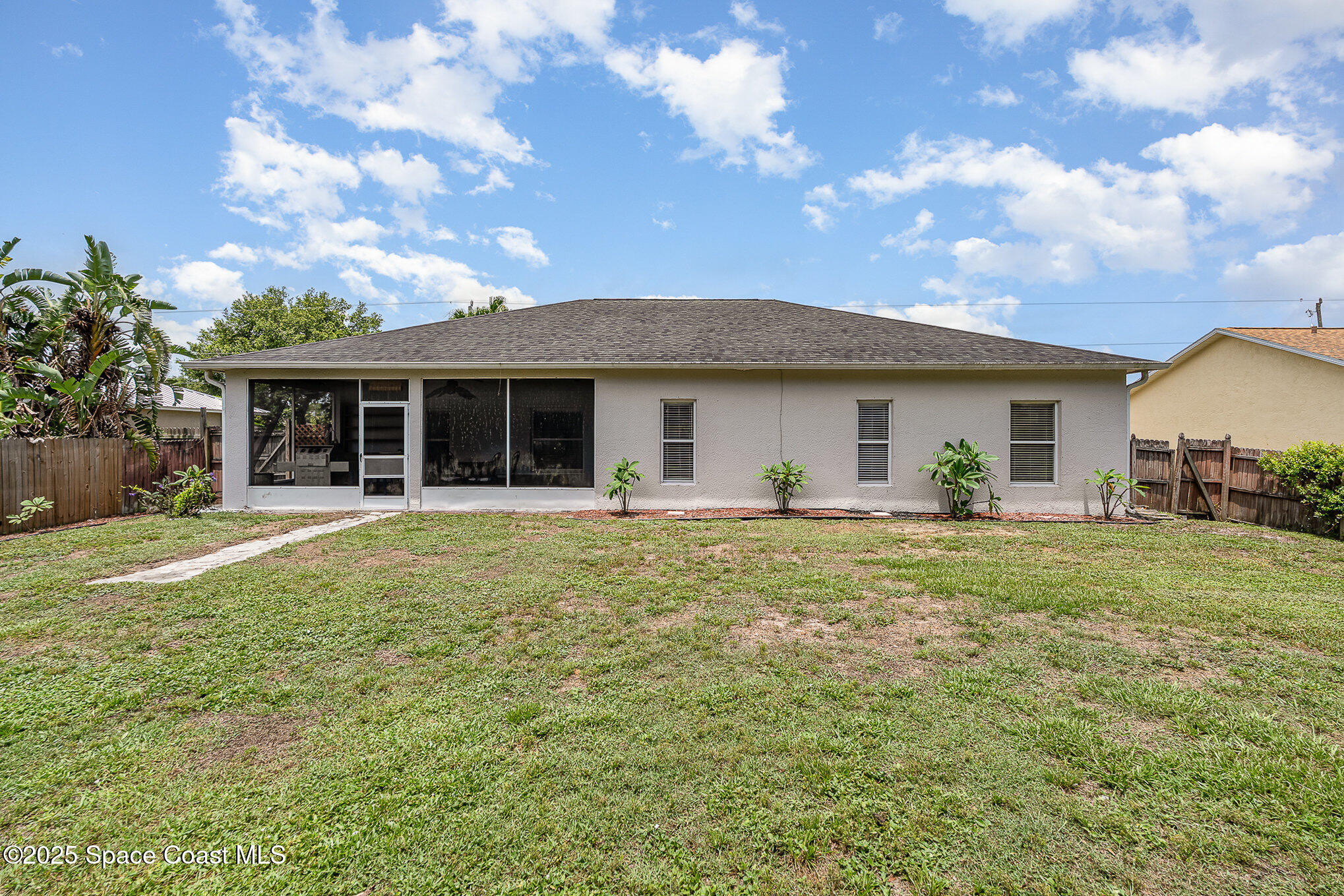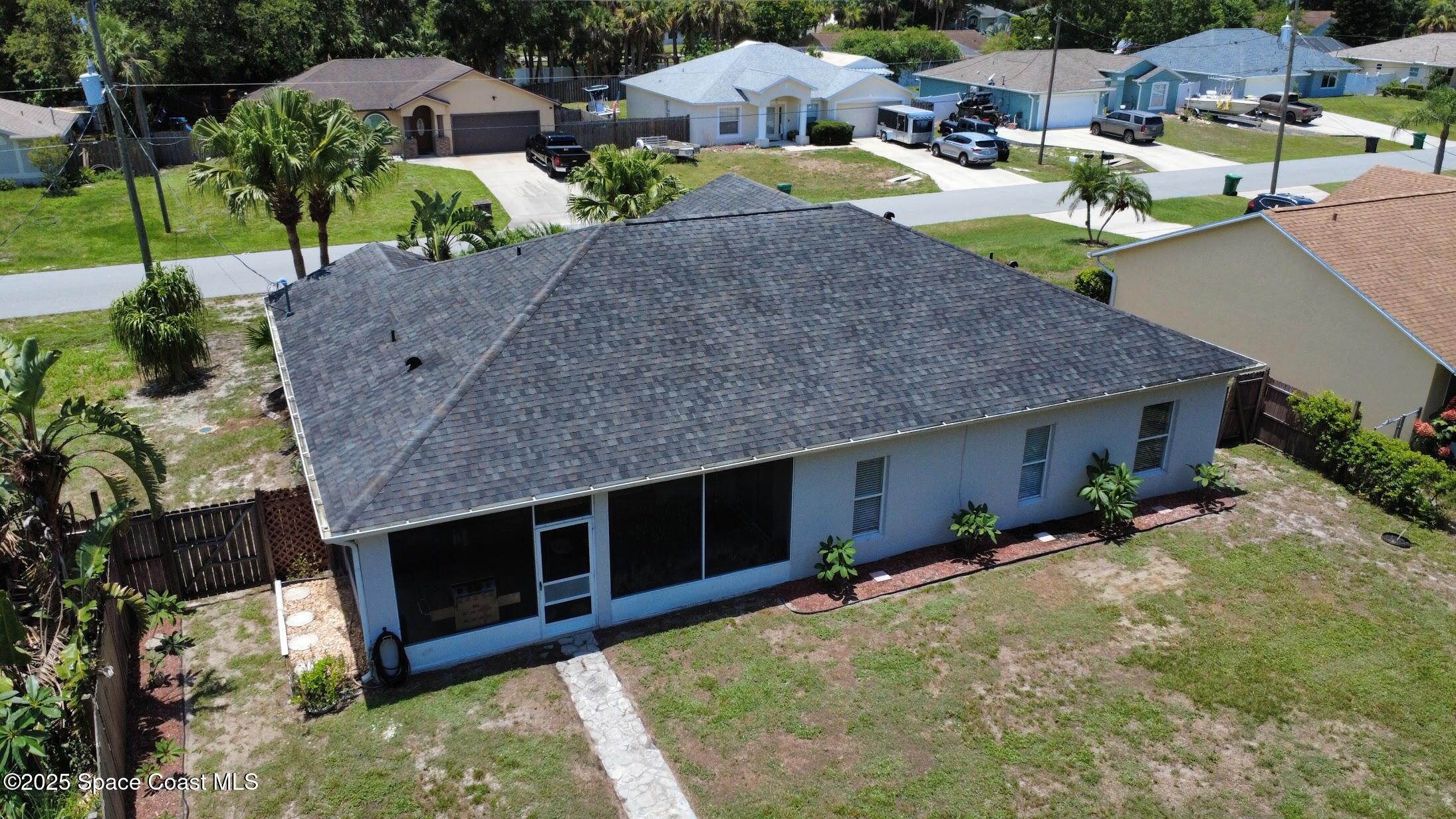 Come check out this spacious 3 bedroom, 2 bath home featuring an open floor plan, vaulted ceilings, formal living and dining room, updated kitchen, tile and wood laminate flooring throughout. (no carpeting!) The primary suite has a walk-in closet, double sinks, a full bath and separate shower. This is a split bedroom floor plan so the primary bedroom is situated on the opposite side of guest bedrooms which is a great layout for families and added privacy. Enjoy the Florida lifestyle outdoors from the screened porch and large fenced backyard. This home is conveniently located just west of I-95 and in close proximity of the interstate, schools, shopping and restaurants. Port Canaveral 20 mins, Orlando Int'l 40 mins.