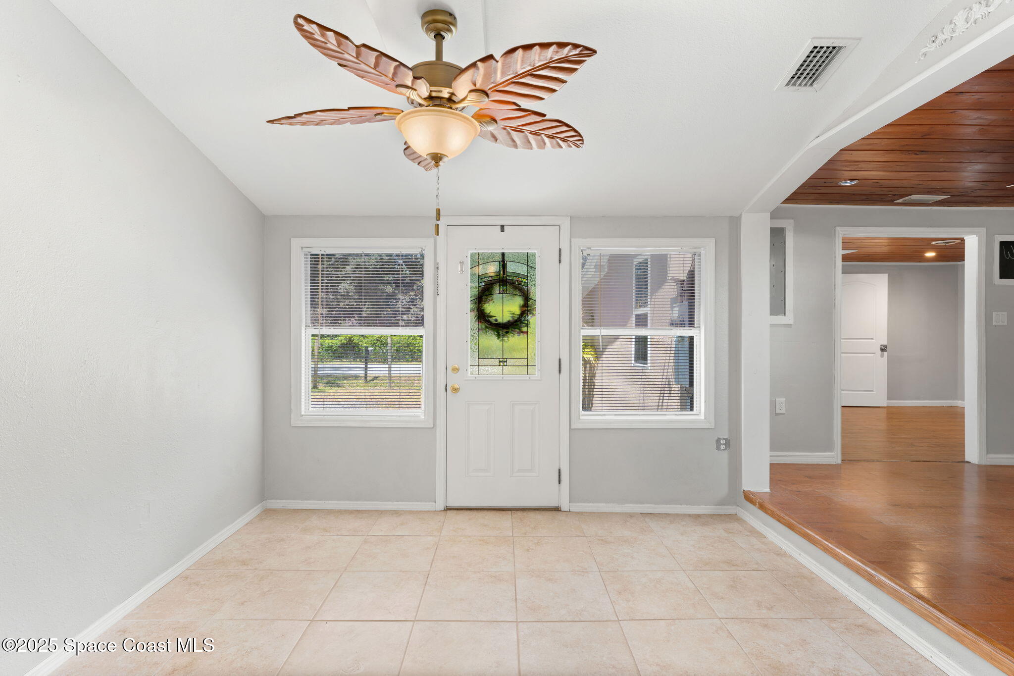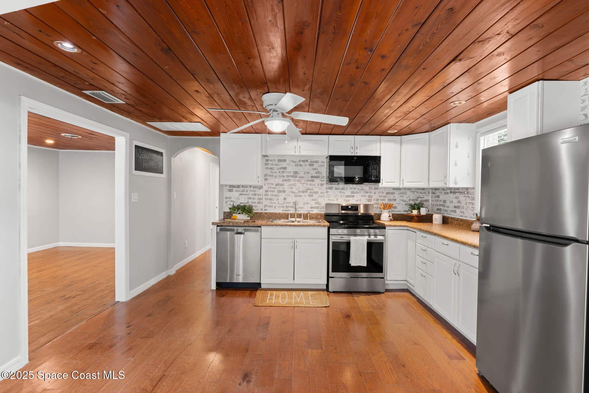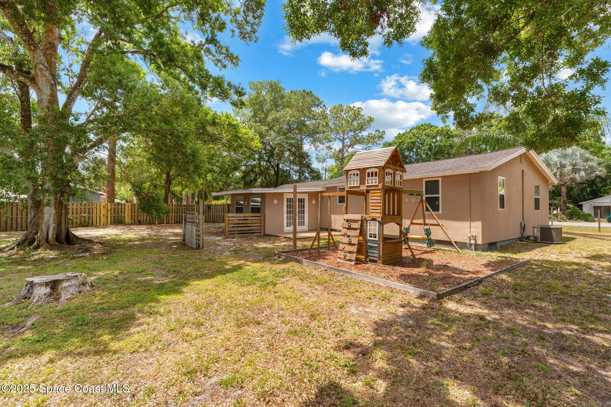 Fall in love with this charming 3BD/1BA home on a spacious .38-acre lot in desirable June Park- where the country meets the city! Brimming with character, it showcases original hardwood floors, wood plank ceilings & a Schmear-finished brick look kitchen backsplash. A sunroom & flexible bonus space add extra room to relax or entertain. Recent upgrades include new appliances, a 2024 energy-efficient heat pump & ductwork, along with updates to the well pump, window screens, electrical panel, plumbing & a 2016 roof still under warranty. The fully fenced backyard is ideal for outdoor enjoyment with a playground & endless potential—add a custom pool, your dream garage, or park your RV with ease! Tucked away on a quiet dead-end street in the heart of Melbourne with no HOA or rental restrictions, this delightful home is the perfect place to create your dream space while enjoying easy access to I-95, close proximity to top-rated schools, shopping, dining & Brevard's stunning beaches!