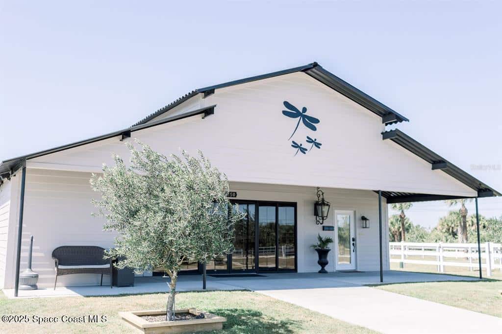 Discover the ultimate lifestyle property in Palm Bay—two adjoining parcels offered together for a combined 11± acres of opportunity. This rare combination of a turnkey event venue and a stunning single-family home creates the perfect work-life balance. The 4-bedroom, 3-bath, 2,793 sq ft residence features an open-concept split floor plan with soaring ceilings and two master suites. At its heart is a gourmet kitchen with custom cabinetry, abundant storage, and quality finishes. Additional highlights include two guest bedrooms, an office/den, and a screened, heated pool and spa for year-round enjoyment. Next door is where happily-ever-afters begin—your turnkey wedding and event venue, brimming with potential. This fully operational business boasts confirmed bookings through 2027 and a beautifully renovated 5,000+ sq ft barn with Bride & Groom suites, office, pavilion, terrace, and both developed and cleared acreage for expansion.