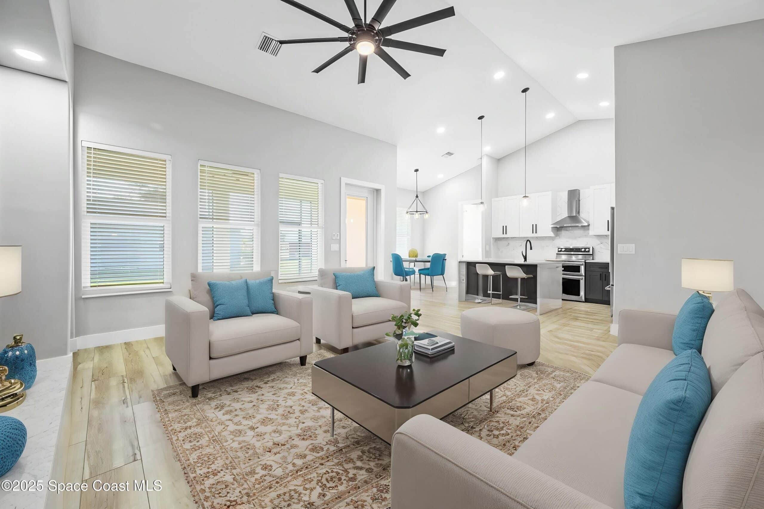 ''CUSTOM BUILT'' ONE OWNER 4 bedroom HOME AVAILABLE NOW! Step into elegance with this stunning home featuring high-end furnishings throughout with full LED lighting and gorgeous plank tile flooring. An OPEN PLAN Design with Spacious family room open to the designer kitchen featuring premium ''Kitchen Aid'' Appliances with a Whirlpool French Door refrigerator, enjoy the large waterfall island with QUARTZ Countertops, Custom soft close cabinets, wine rack above refrigerator, designer pendant lighting and spacious breakfast nook. Built for both beauty and durability, this home includes Hurricane IMPACT Windows, Doors, and Garage Door, offering peace of mind year-round. Enjoy 10 ft high ceilings and 8-foot interior doors that create a spacious, open feel. A large owners bedroom offers two closets and deluxe bathroom with separate soaking tub, tile walk in shower, and dual sink vanity. Bonus: the expansive backyard is ready for your dream pool. Screened in porch with fan is ready now to enjoy!